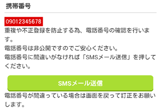 携帯番号は本人確認のために必要で、次の画面で番号認証をするので、正しく入力して下さいね。
