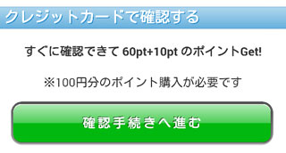 クレジットカードで100円分のポイントを購入する事で認証が終わります。
